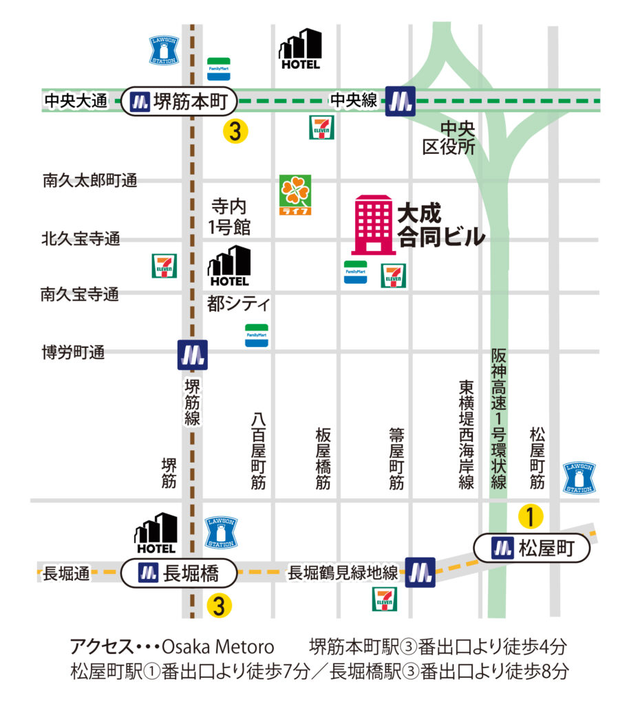 | 所在地 | 〒541-0057 大阪市中央区北久宝寺町1-4-10 大成合同ビル7F |